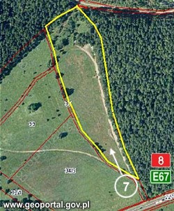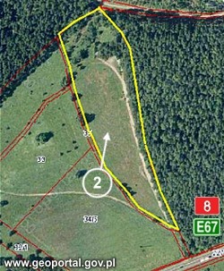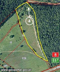 4. Das Grundstück ist in unmittelbarer Nachbarschaft der Landstraße Nr. 8 gelegen, die Wroclaw mit Kudowa Zdroj verbindet (die Entfernung zum Grenzübergang mit Tschechien ca. 17 km), es hat Zugang zur Straße über einen ausgesonderten Gemeindeweg (34/4 und 35), ca. 4 km vom Zentrum von Polanica-Zdroj, 5 km von Duszniki-Zdroj, ca. 9 km in gerader Linie zur Grenze mit Tchechischer Republik entfernt, am Rande des Gory-Stolowe-Gebirgsmassivs und umgeben von Gory-Stolowe-Nationalpark, dem attraktivsten Kur- und Sanatorienregion Polens.